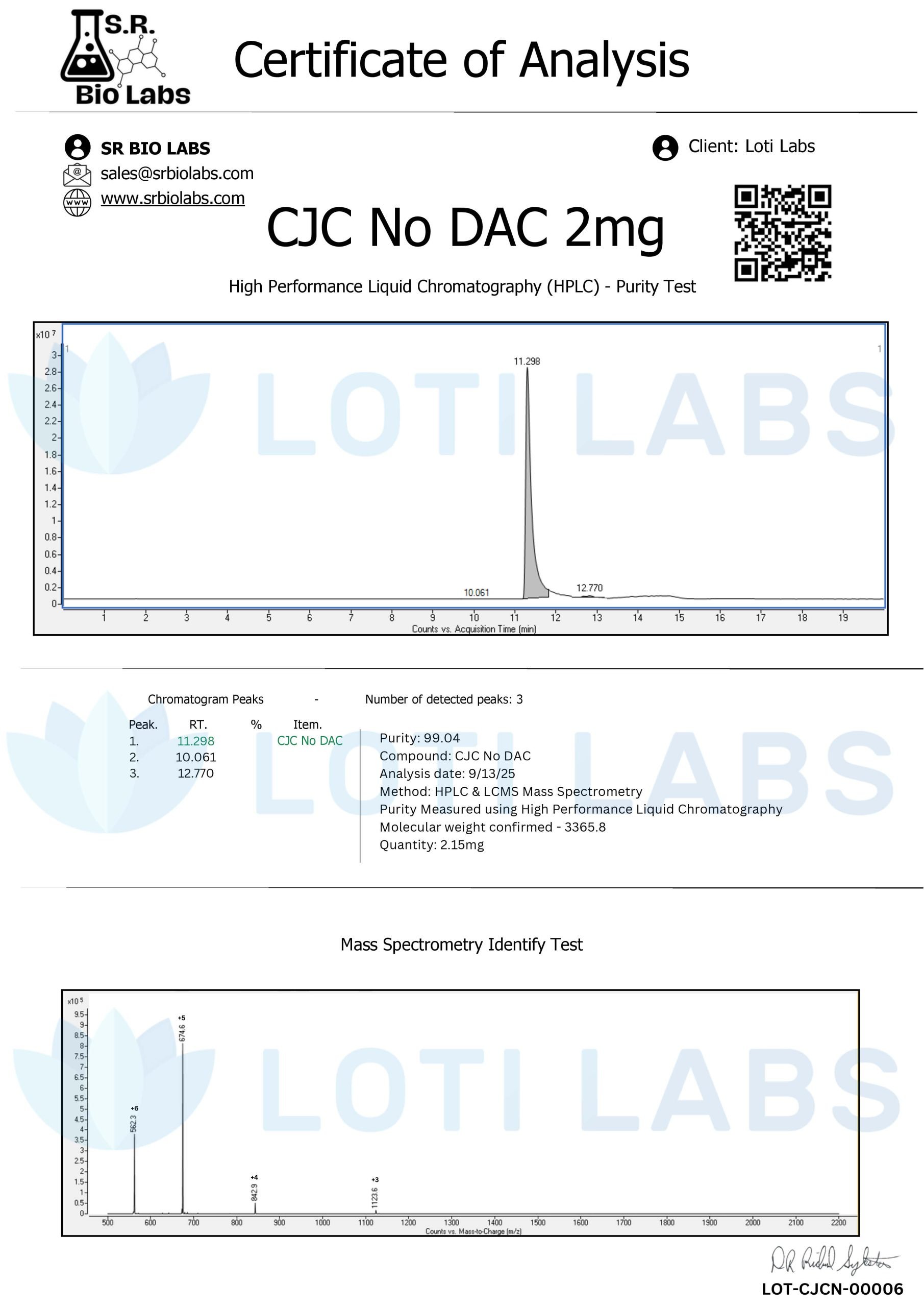 For institutions looking for verified cjc1295 without dac with quality documentation and regulatory compliance, Loti Labs is the reliable and professional choice for your research program. We stand behind our quality assurance, third party testing and customer satisfaction to advance growth hormone research while maintaining regulatory standards.