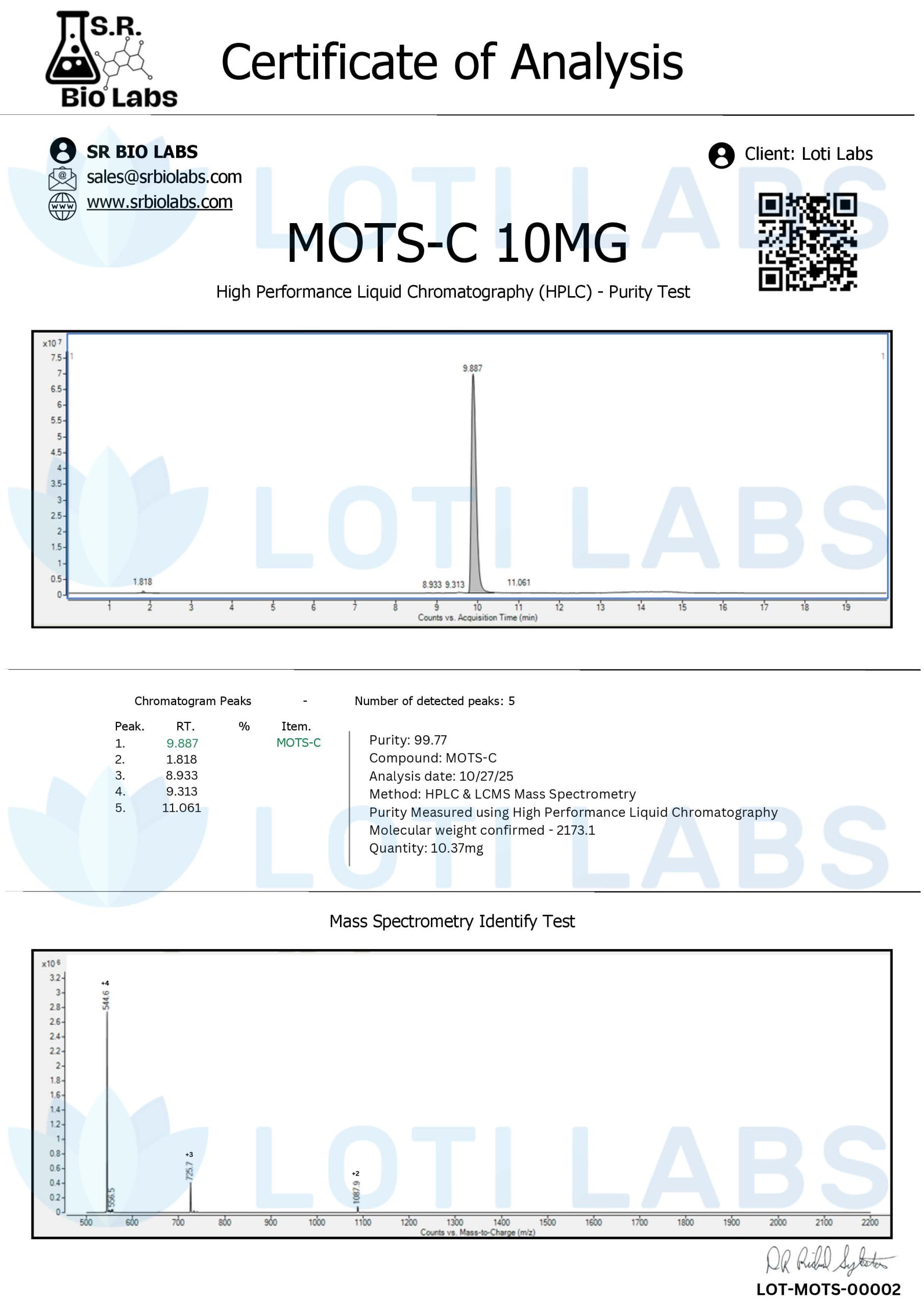 Loti Labs offers high-purity mots c for demanding research applications with full analytical documentation. Each batch is tested to ensure researchers receive compounds meeting scientific standards.