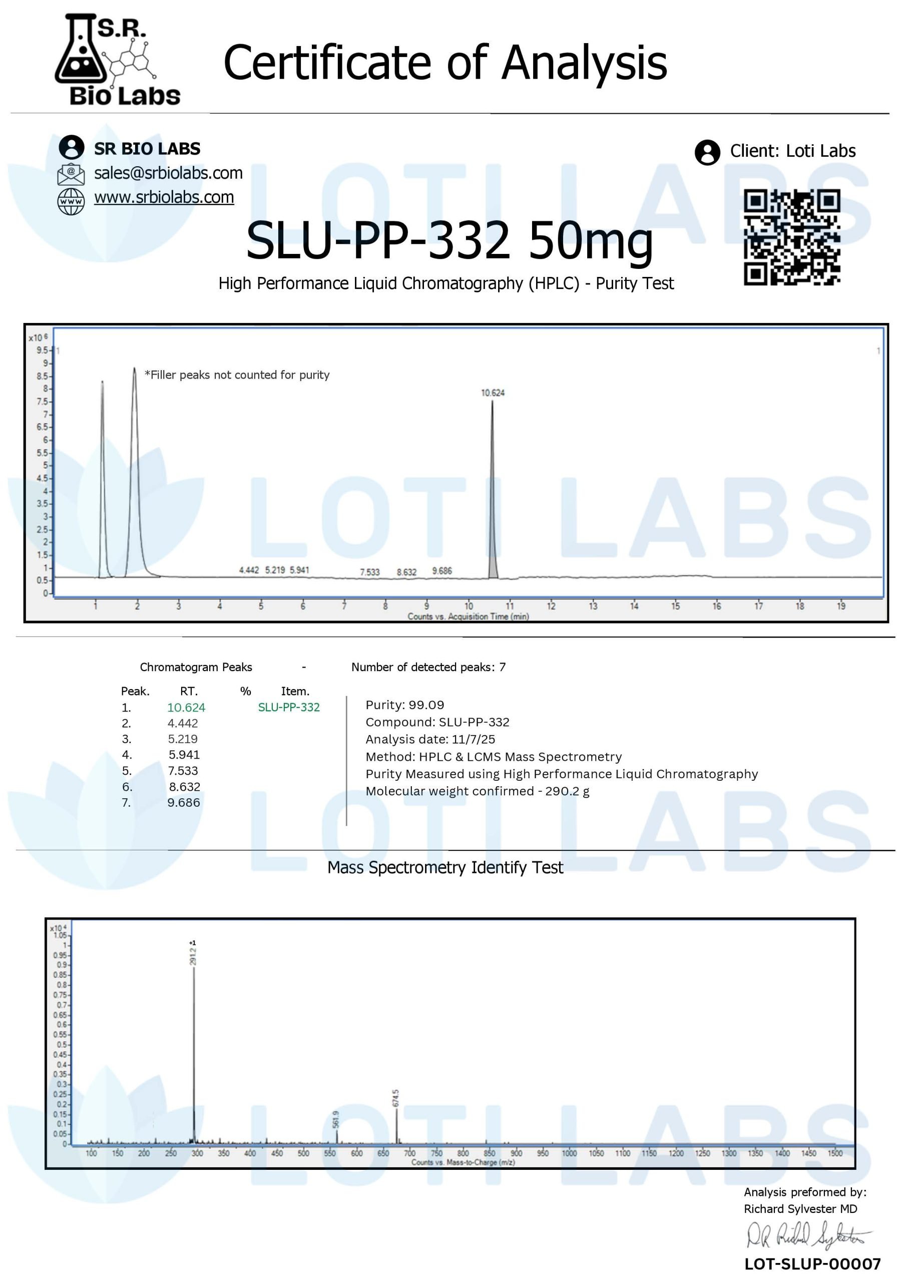 Loti Labs has high purity standards for SLU-PP-332, 99%+ purity meets research grade. This ensures researchers get consistent material for their experiments and data collection.